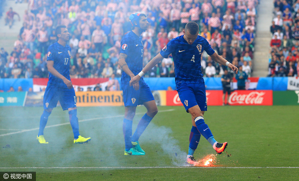 這次煙花事件發(fā)生在比賽第86分鐘,克羅地亞2-1捷克,此時(shí)看臺上的球迷朝球場內(nèi)投擲了8個煙火,全場球迷發(fā)出噓聲,要求這些肇事者停止這種破壞比賽的舉動。