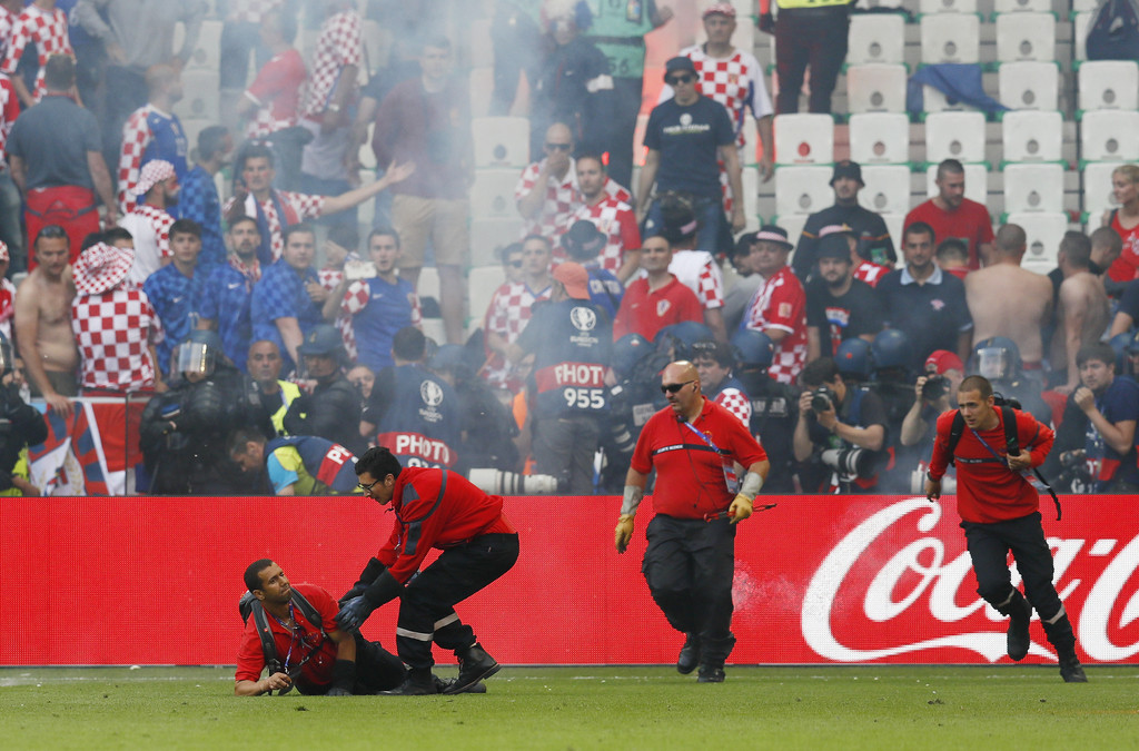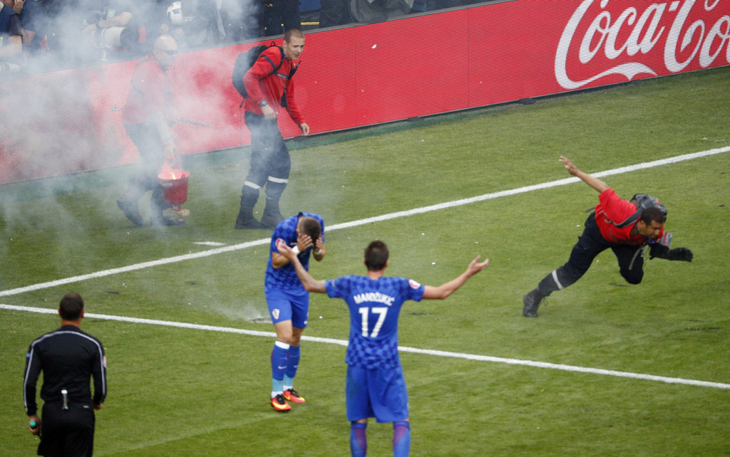 在克羅地亞與捷克比賽的后時(shí)刻,克羅地亞球迷向場內(nèi)投擲焰火,其中一個甚至發(fā)生爆炸。這一突發(fā)情況導(dǎo)致比賽一度中斷。針對這一事件,歐足聯(lián)確認(rèn)將在周六開啟紀(jì)律處罰程序,克羅地亞很可能遭到追加處罰。