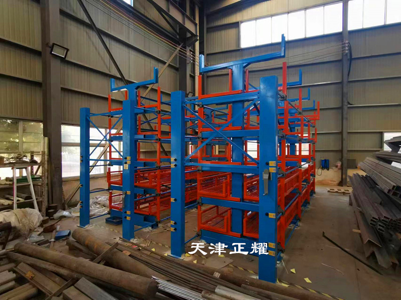 湖北荊門伸縮式懸臂貨架分為4-6層,每層雙面存放,8-12個貨位,每個貨位承重2-5噸,總存儲量16噸-60噸,擺放的種類很多,如管材 棒料 型鋼 槽鋼 角鐵 鋼筋 圓鋼 方管 軸 機械配件 半成品 大件 長料 不規(guī)則產(chǎn)品等,存儲長度不限,多長都能存放。使用行車吊取預(yù)留的巷道空間小,不需要轉(zhuǎn)彎半徑,再長的材料也不用擔(dān)心占地空間大了,合理利用空間,規(guī)范化管理車間。