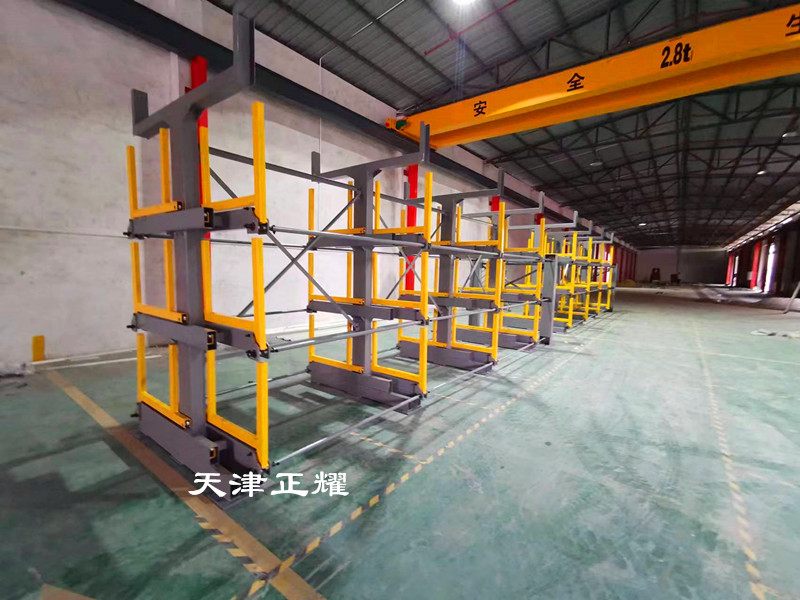 伸縮式懸臂貨架有6層伸縮結(jié)構(gòu),每層雙面存放,左右伸出使用,占地小平穩(wěn)性好