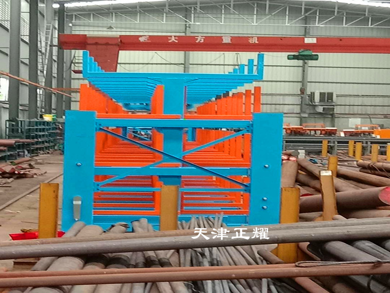 伸縮式圓鋼擺放工裝有6層,5層伸縮式結(jié)構(gòu),頂層固定,12個貨位,每個貨位承重5噸,總存儲量60噸,分類擺放幾十種規(guī)格型號的圓鋼,上下取料都可以使用吊車,中間層的底層的直接搖出直上直下存取,操作簡單方便,圓鋼貨架之間預(yù)留的巷道空間很小,節(jié)省場地空間,立體存放擺放的種類多數(shù)量大。圓鋼分類擺放整齊有序隨時了解庫存量,不耽誤后續(xù)的生產(chǎn)使用。