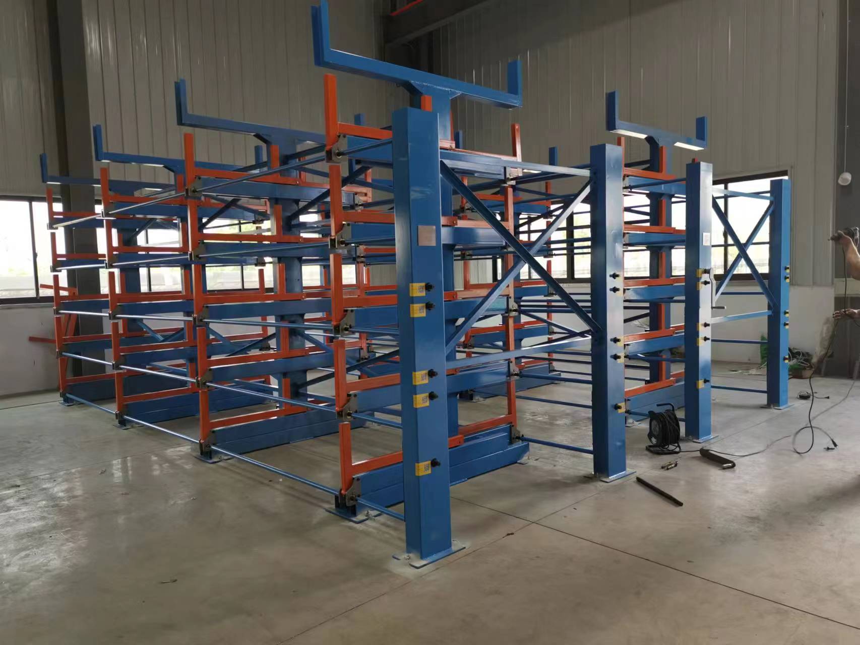 鋼材貨架采用伸縮式結構立體存放各種鋼材整齊省空間存儲量高,行車存取單人操作使用簡單方便快捷。