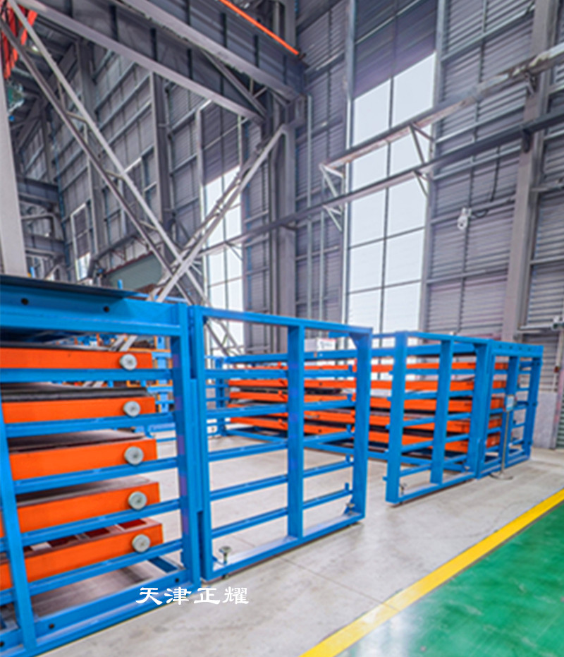 臥式板材貨架存放6米鋼板適合配套激光切割機(jī)使用,吊車存取單人操作使用方便快捷。多層分類擺放整齊占地小,存取使用找料管理方便快捷。