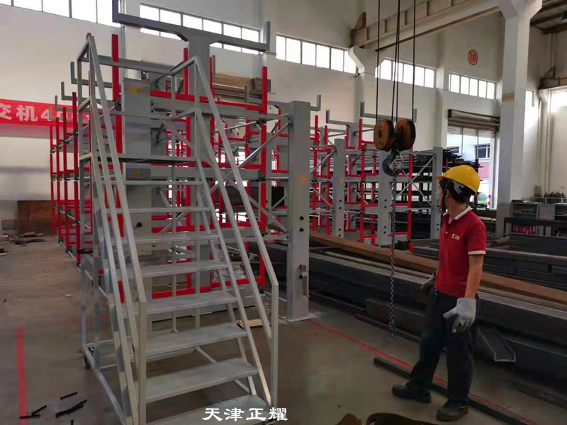 伸縮式搖出型材貨架每層懸臂可以伸縮,使用時懸臂搖出吊車存取型材到切割機(jī)上完成下料工作,立體存放占地小存儲量高,單人操作使用簡單方便快捷。