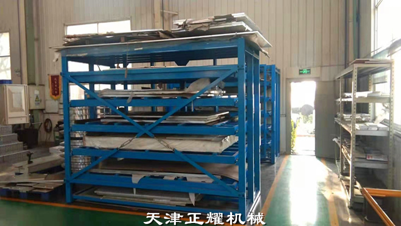 鋼板存放架手動搖出式結構,每層抽屜承重5噸單人單手搖出使用,多層分類擺放鋼板整齊數(shù)量清晰,占地小存儲量高。吊車存取到激光切割機上完成下料工作,效率高,成本低。