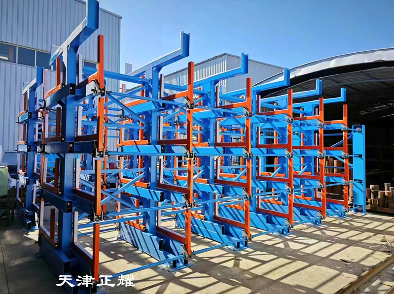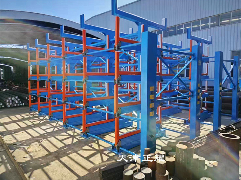 室外罩棚伸縮式懸臂貨架存放露天鋼材型材管材圓鋼等材料,立體存放占地小擺放種類多數(shù)量大,可以分類存取找料節(jié)省時間人工,罩棚配合使用防止鋼材生銹腐蝕變形,增加貨架的使用壽命。