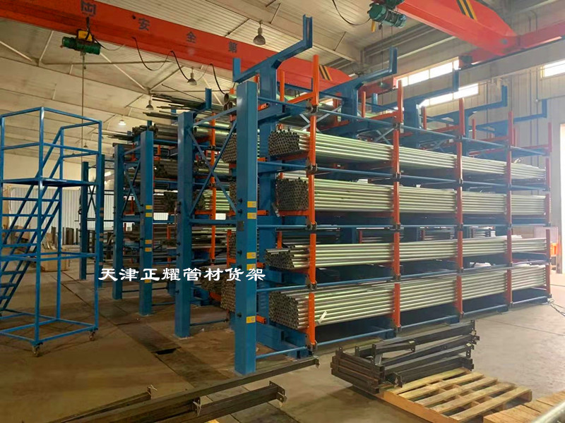 伸縮式管材貨架分類擺放幾十種管材整齊有序數(shù)量清晰,立體存放省空間存儲量高。懸臂伸出吊車存取單人操作使用簡單方便快捷,總存儲量60噸,隨時了解庫存量好統(tǒng)計盤點,管理方便。