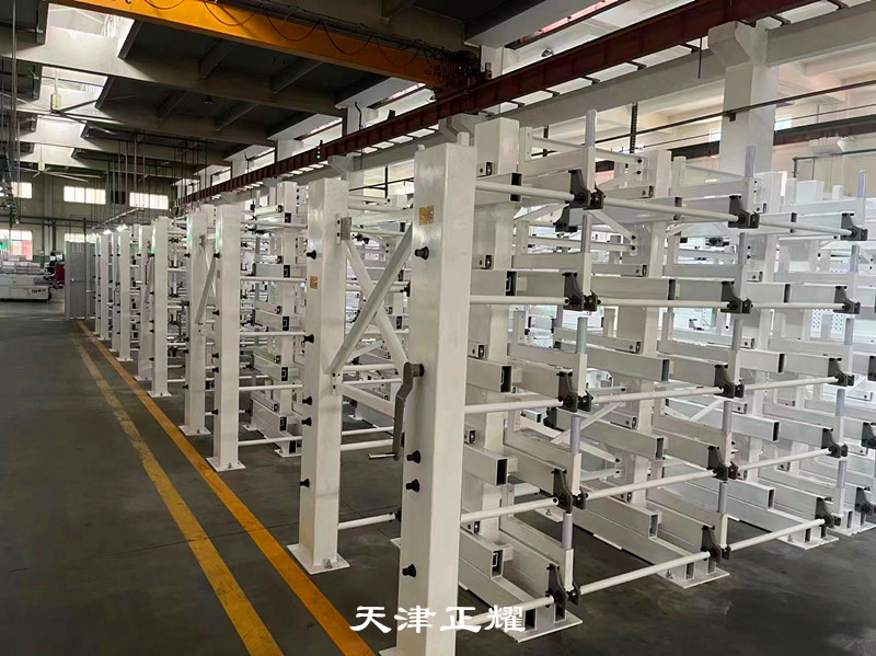 管材棒料鋁型材銅排鋼材軸立體存放案例伸縮式懸臂貨架省空間擺放種類多整齊有序數(shù)量清晰好盤點,吊車存取單人操作使用簡單方便快捷。