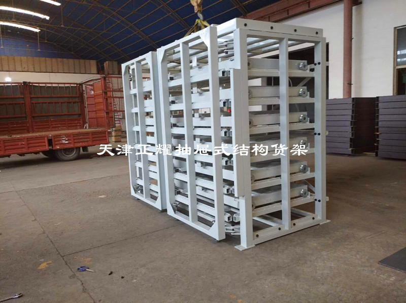 江蘇蘇州抽屜式鋼板存放架可以分格分層存放,每層單獨(dú)拉出,每層承重5噸,