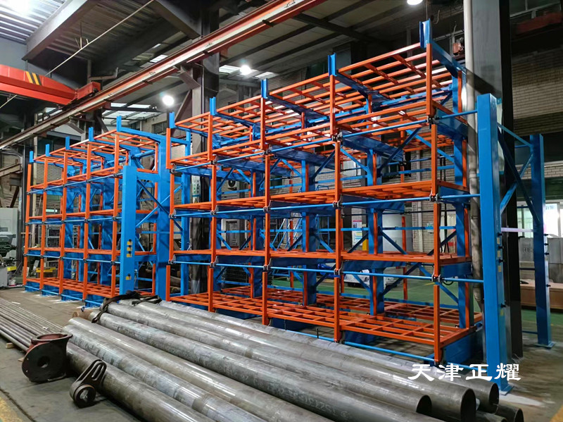 鋼材管材型材圓鋼存儲省空間方式伸縮式懸臂貨架