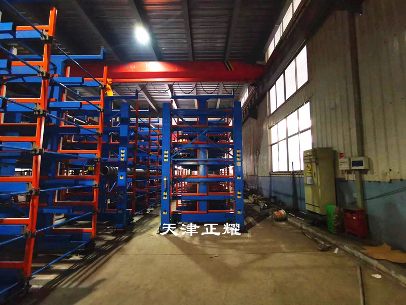 湖北孝感存放管材圓鋼棒料銅排鋁型材軸的伸縮懸臂貨架